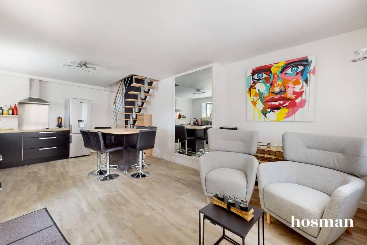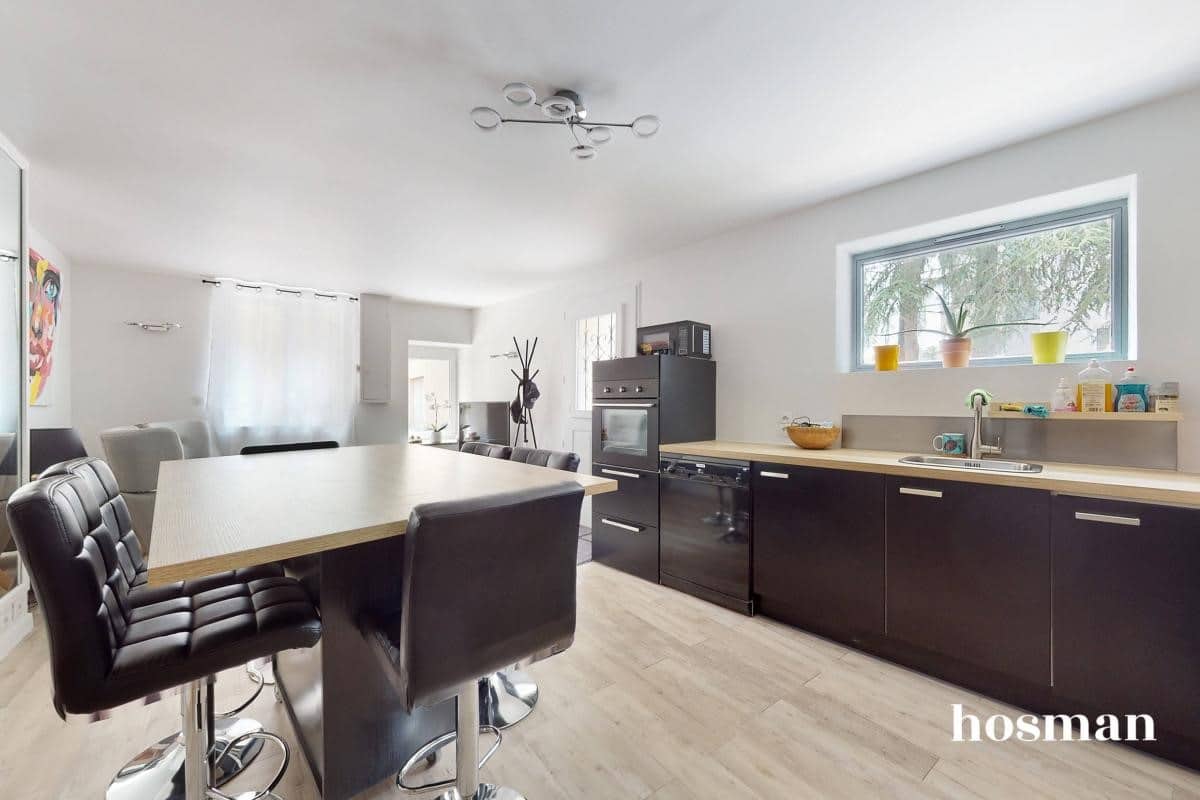 Au rez-de-chaussée, profitez d’une superbe pièce à vivre de 50 m² avec cuisine US toute équipée. Cette pièce lumineuse et spacieuse est idéale pour organiser de superbes repas en famille ou entre amis.